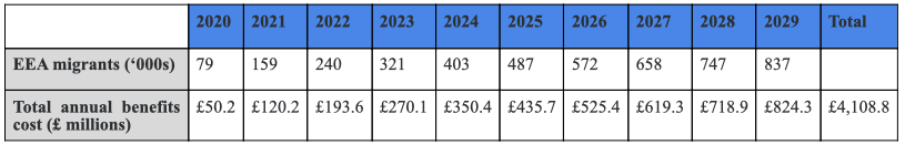 The analysis shows that continuing free movement with the EU would result in a dramatic increase in the number of people coming to Britain over 10 years. This would increase the size of the benefits bill by over £4 billion over the same period. None of this is costed in Labour’s manifesto.